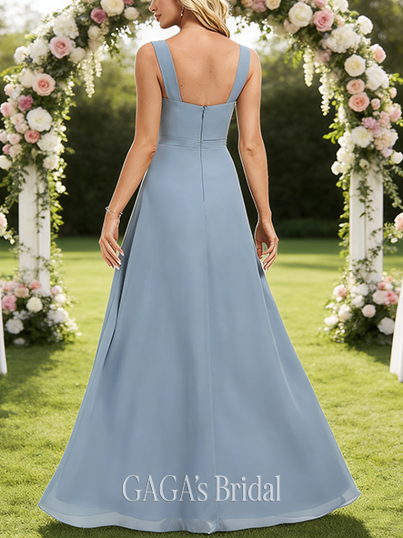 - A-line Sleek V-Neck Floor-Length Chiffon Bridesmaid Dress