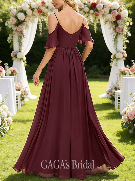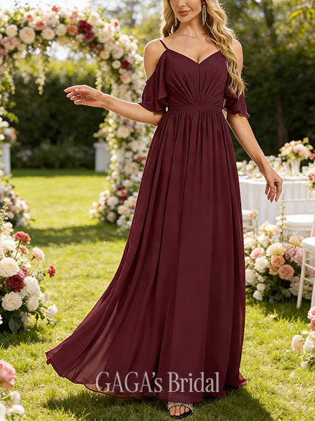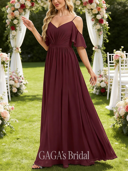 • A-line Bewitching V-Neck Floor-Length Chiffon Bridesmaid Dress With Ruffle