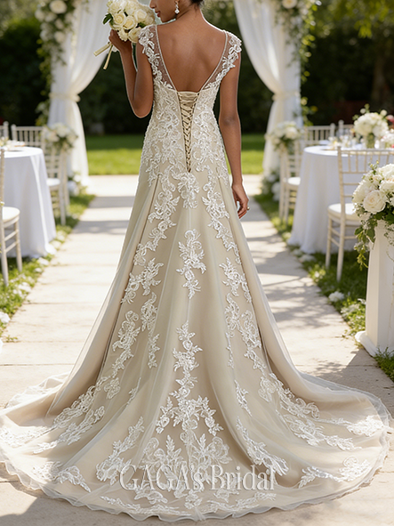 - A-Line Elegant Scoop Neck Wedding Dress