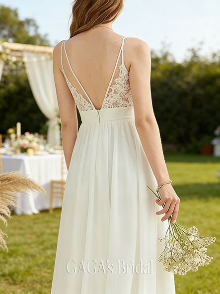 - A-Line Romantic V-Neck Lace Chiffon Wedding Dress