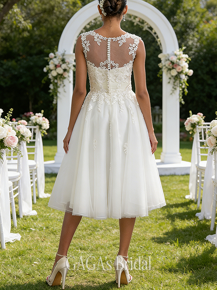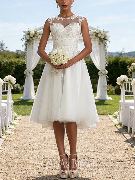 - A-Line Scoop Illusion Intricate Beading Wedding Dress