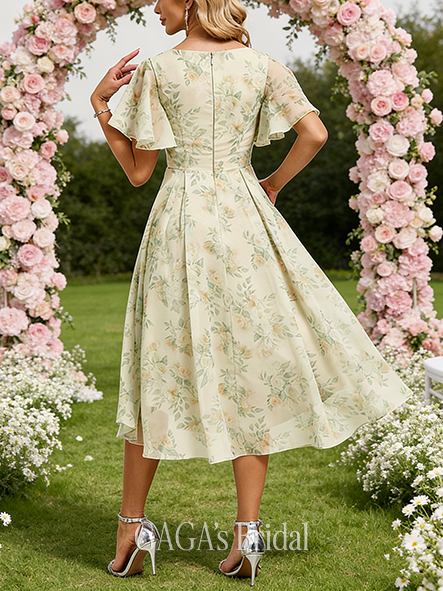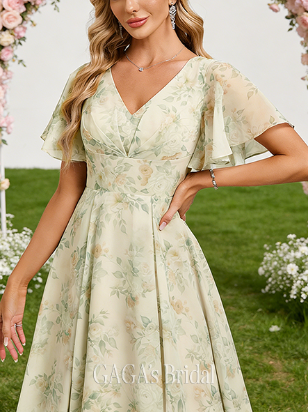 A-line Fashion V-Neck Asymmetrical Chiffon Bridesmaid Dress With Ruffle