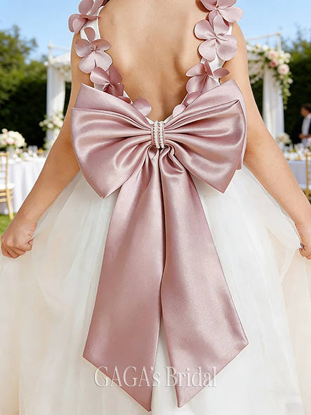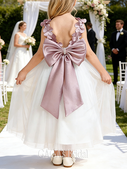 - A-line Classic Scoop Knee-Length Satin Flower Girl Dress