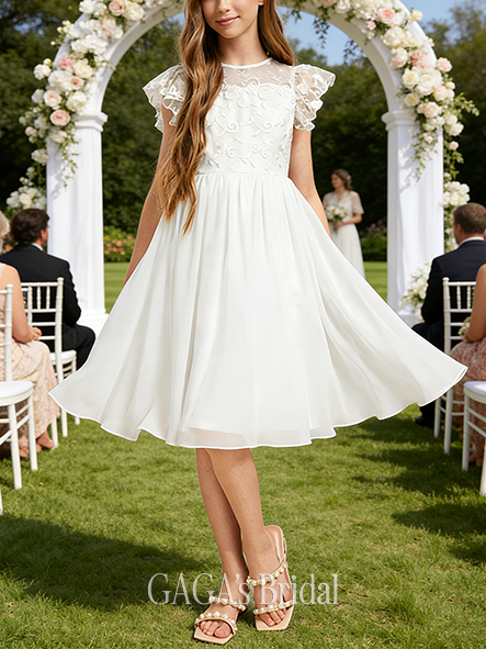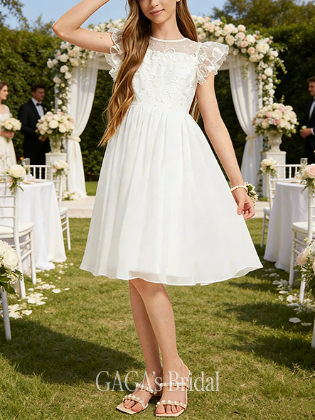 - A-line Classic Scoop Knee-Length Satin Flower Girl Dress