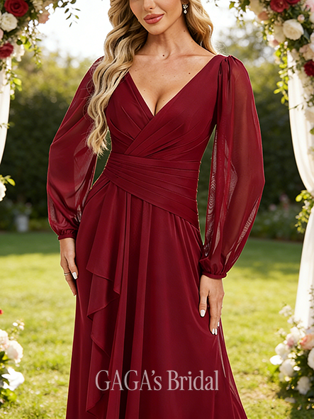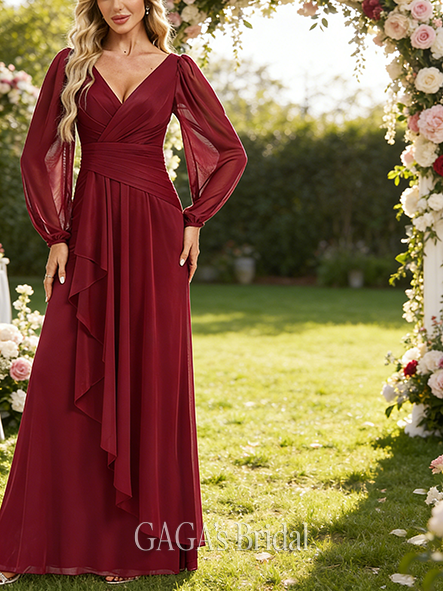 - A-line Soft V-Neck Floor-Length Chiffon Bridesmaid Dress
