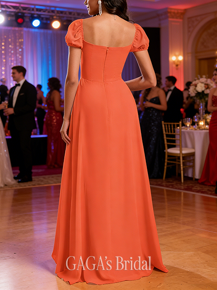 - A-line Sophisticated V-Neck Sweep Train Satin Prom Dresses
