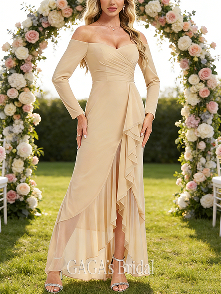 - A-line Soft V-Neck Floor-Length Chiffon Bridesmaid Dress