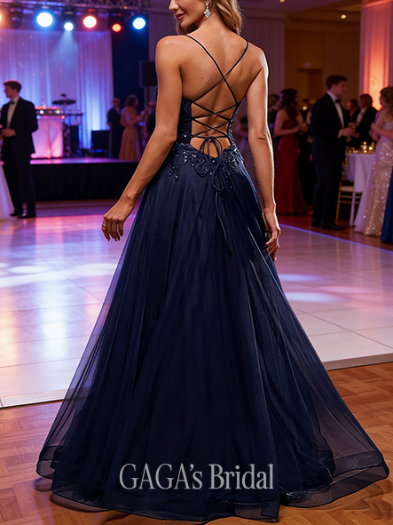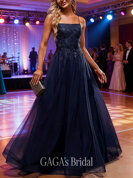 - A-line Breezy Square Floor-Length Tulle Prom Dresses