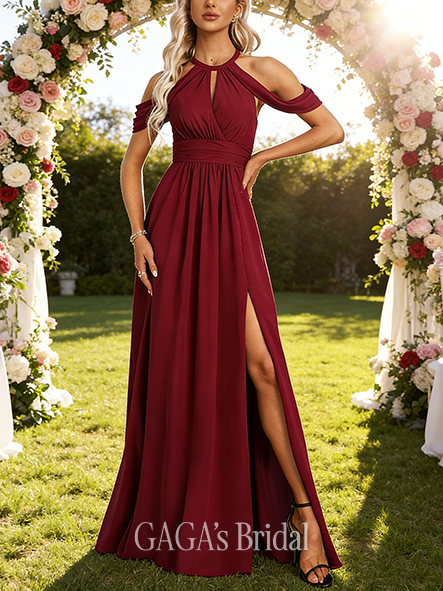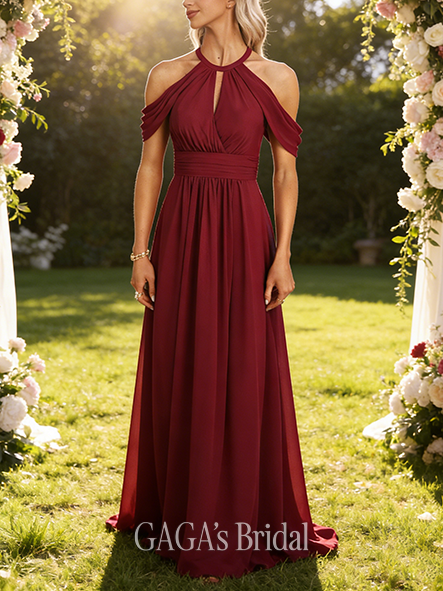 - A-line Graceful V-Neck Floor-Length Chiffon Bridesmaid Dress