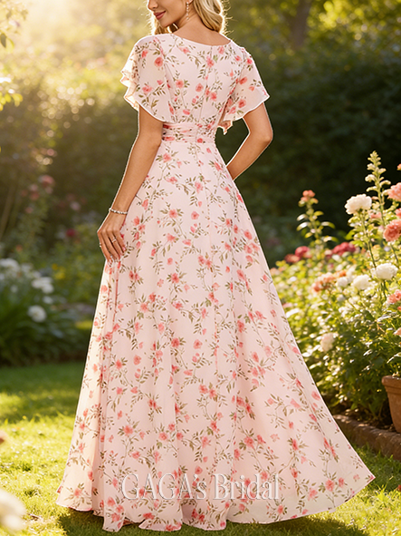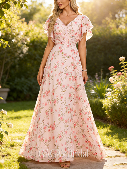 - A-line Polished V-Neck Floor-Length Chiffon Bridesmaid Dress