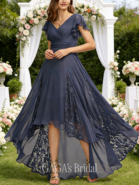 - A-line Sleek V-Neck Floor-Length Chiffon Bridesmaid Dress