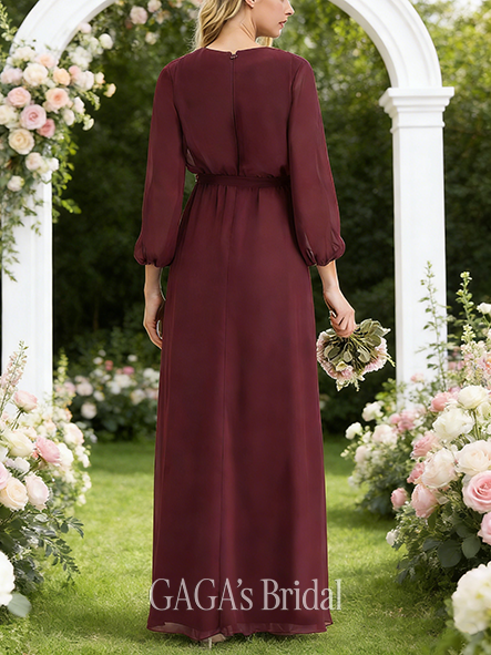 - A-line Alluring Cowl Floor-Length Chiffon Bridesmaid Dress