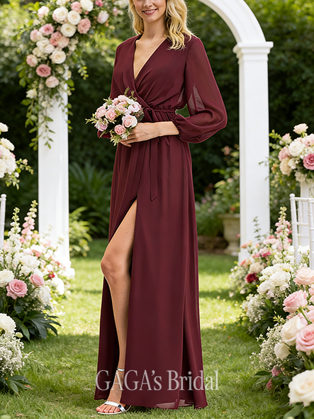 - A-line Rich V-Neck Floor-Length Satin Bridesmaid Dress