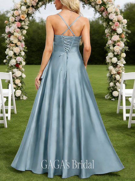 A-line Plush V-Neck Floor-Length Stretch Satin Bridesmaid Dress