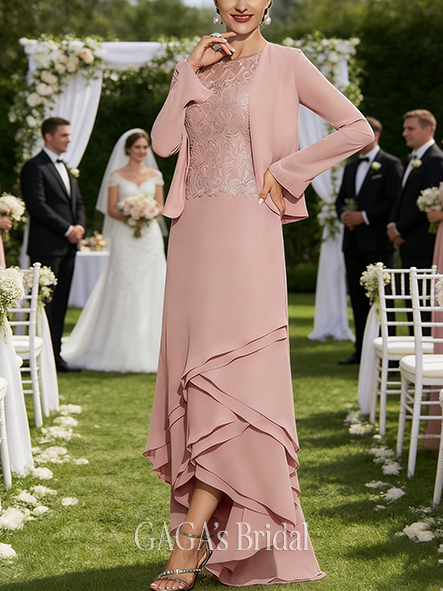 • A-line Exquisite Scoop Asymmetrical Lace Chiffon Mother of the Bride Dress
