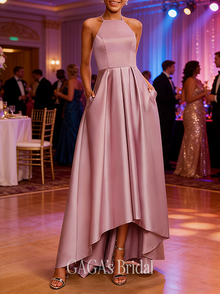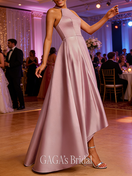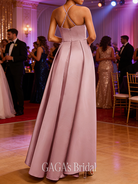- A-line Silky V-Neck Floor-Length Satin Prom Dresses