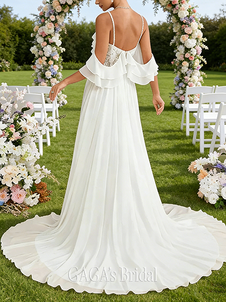 - V-Neck A-Line Wedding Dress with Sequins and Sweep Train