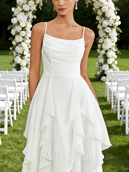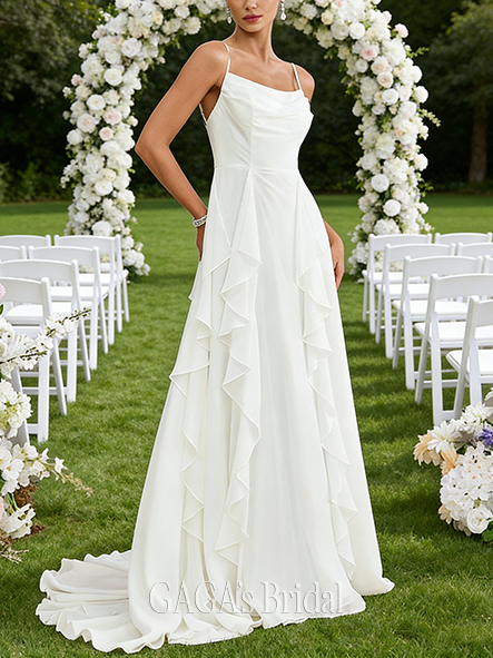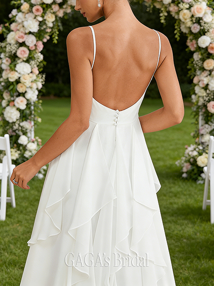 - V-Neck A-Line Lace Chiffon Wedding Dress