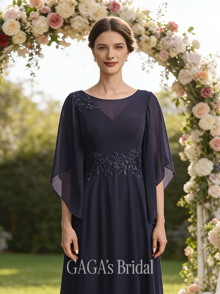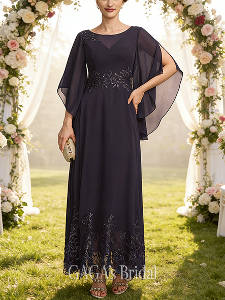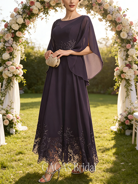 • Fall A-line Sophisticated Scoop Illusion Ankle-Length Lace Chiffon Mother of the Bride Dress With Sequins