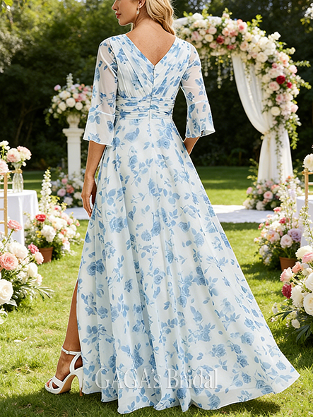 • Fall A-line Sophisticated V-Neck Floor-Length Chiffon Mother of the Bride Dress With Cascading Ruffles