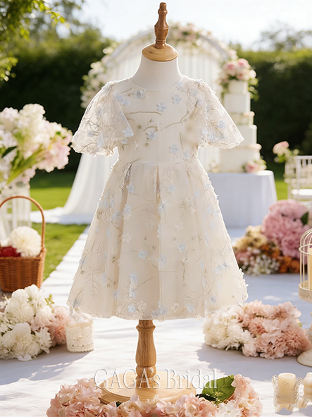 - A-line Airy Scoop Ankle-Length Chiffon Flower Girl Dress