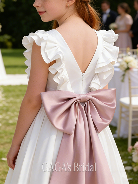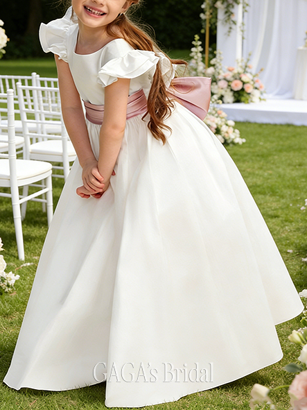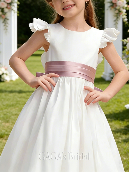 - A-line Classic Scoop Knee-Length Satin Flower Girl Dress