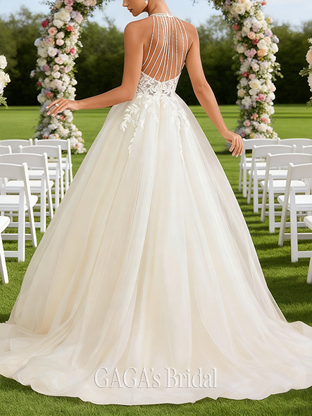 - V-Neck A-Line Lace Tulle Wedding Dress