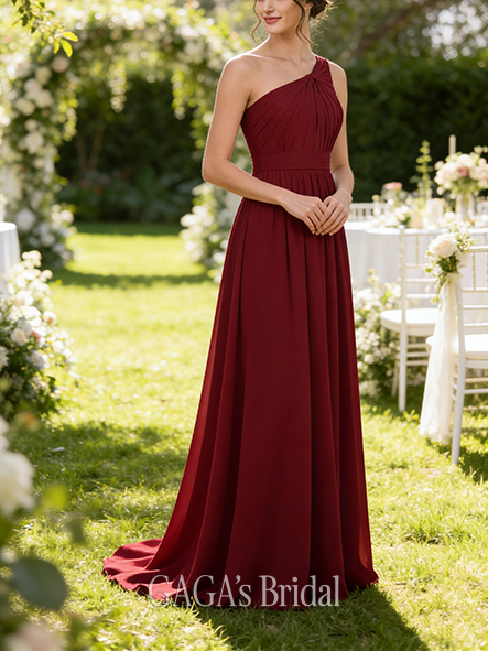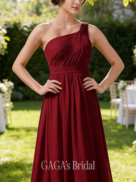 • Junior A-line Graceful One-Shoulder Floor-length Chiffon Bridesmaid Dress