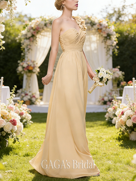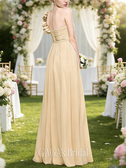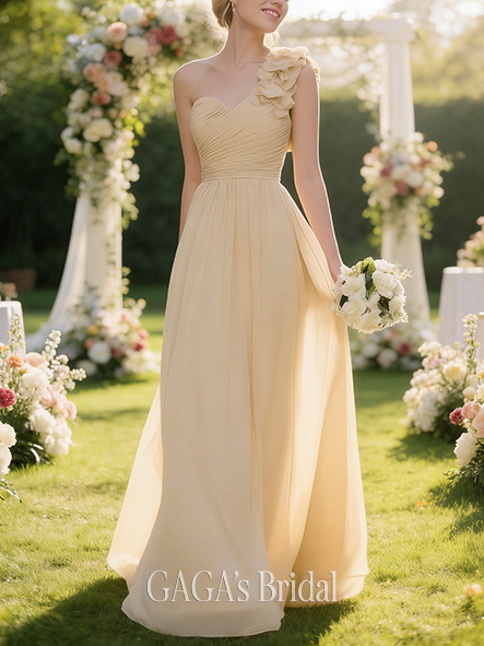 • Maternity Friendly A-line Playful One Shoulder Floor-Length Chiffon Bridesmaid Dress With 3D Floral Ruffle