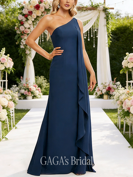 Maternity Friendly A-line Distinctive Halter One Shoulder V-Neck Floor-Length Chiffon Bridesmaid Dress