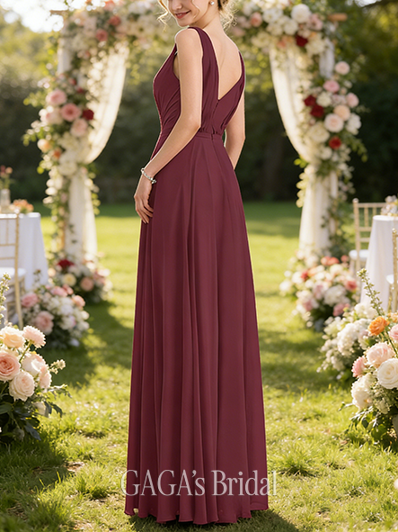 Maternity Friendly A-line Tidy V-Neck Floor-Length Chiffon Bridesmaid Dress With Pleated