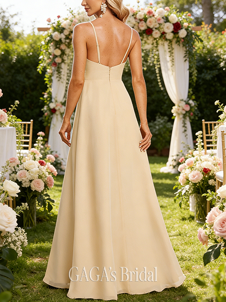 • Maternity Friendly A-line Unadorned V-Neck Floor-Length Chiffon Bridesmaid Dress