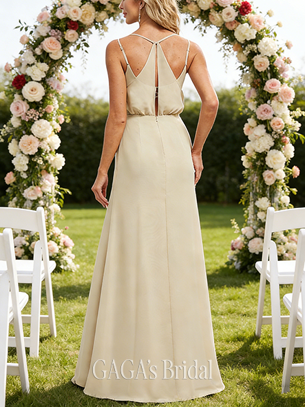 New Arrival A-line Celestial V-Neck Floor-Length Chiffon Bridesmaid Dress
