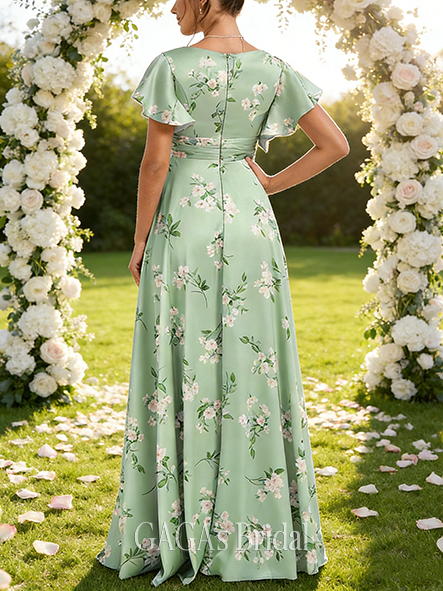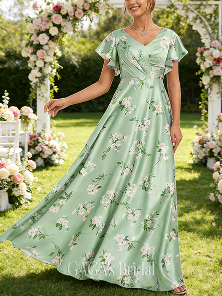 • New Arrival A-line Beautiful V-Neck Floor-Length Matte Satin Bridesmaid Dress With Ruffle