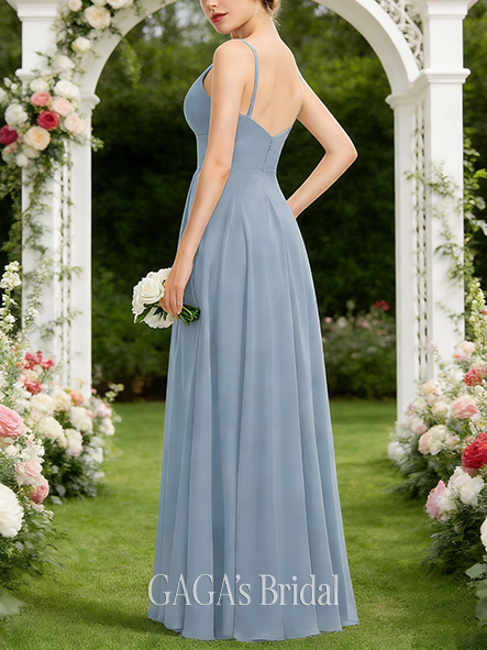 New Arrival A-line Tidy V-Neck Floor-Length Chiffon Bridesmaid Dress With Pleated