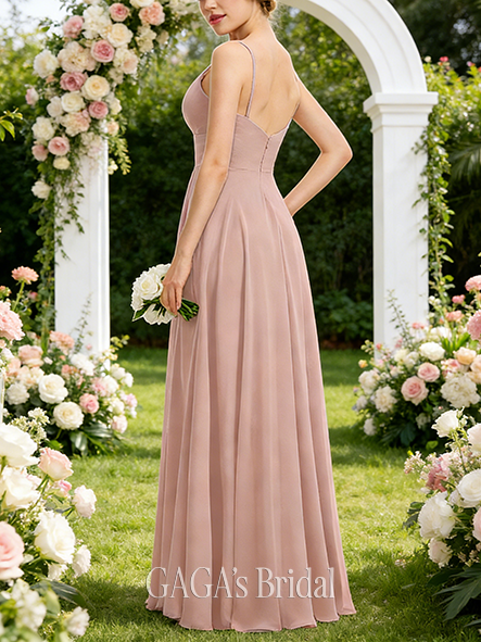 • New Arrival A-line Tidy V-Neck Floor-Length Chiffon Bridesmaid Dress With Pleated