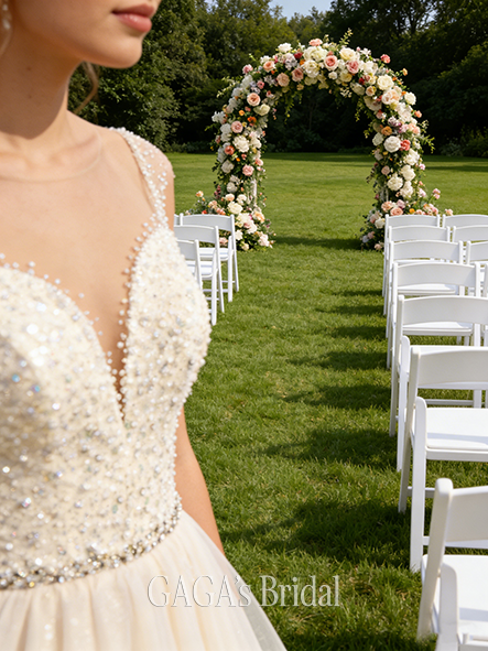 - Halter Neck A-Line Wedding Dress with Sequins