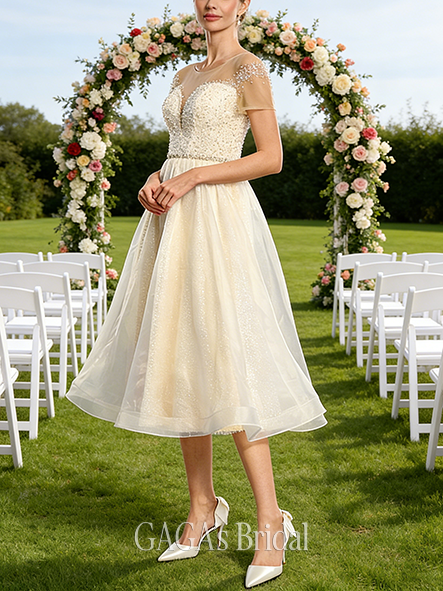 - Scoop Illusion A-Line Wedding Dress with Beading