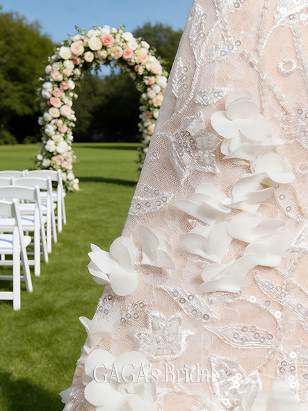 - V-Neck A-Line Wedding Dress with Sequins