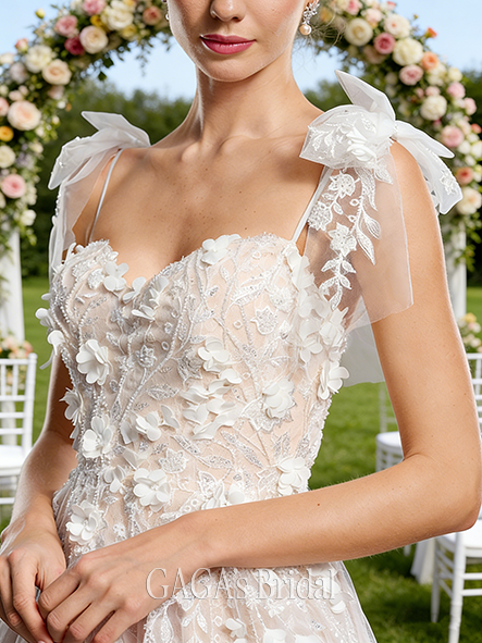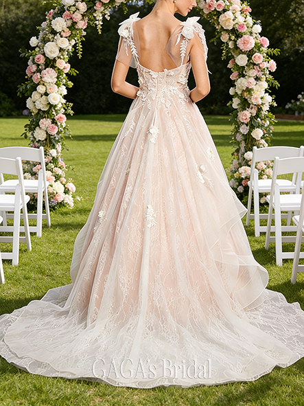- V-Neck A-Line Lace Wedding Dress