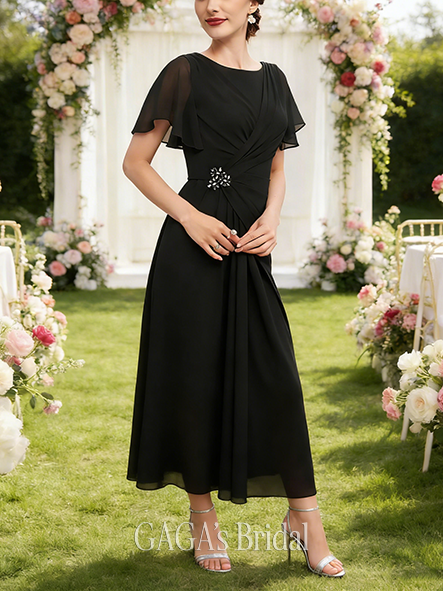 New Arrival A-line Exquisite Scoop Ankle-Length Mesh Mother of the Bride Dress With Pleated Beading