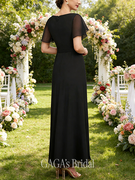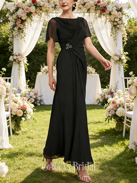 • New Arrival A-line Exquisite Scoop Ankle-Length Mesh Mother of the Bride Dress With Pleated Beading