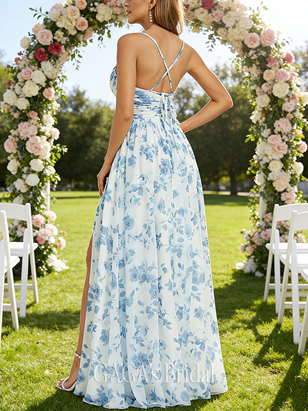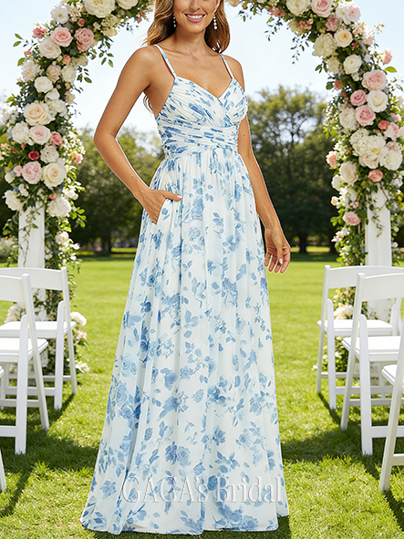 • Plus Size A-line Graceful V-Neck Floor-Length Chiffon Bridesmaid Dress