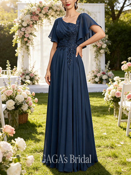 • Plus Size A-line Noble Asymmetrical Floor-Length Lace Chiffon Mother of the Bride Dress With Pleated Sequins