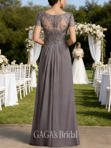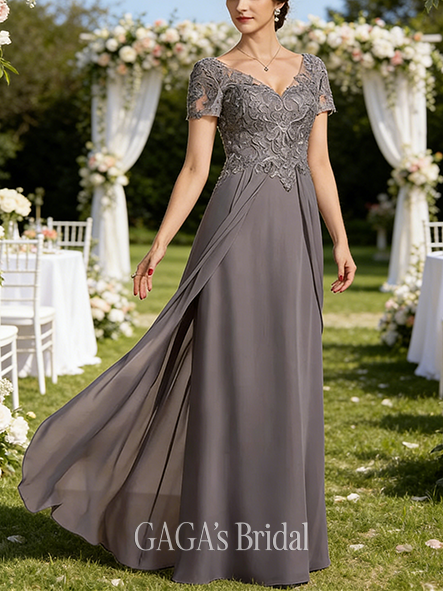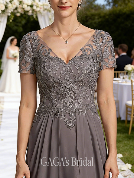 • Plus Size A-line Premium Graceful V-Neck Floor-Length Chiffon Lace Mother of the Bride Dress With Overskirt