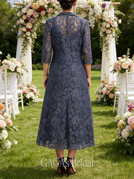 Plus Size A-line Polished Luxury Scoop Tea-Length Tulle Floral Lace Mother of the Bride Dress