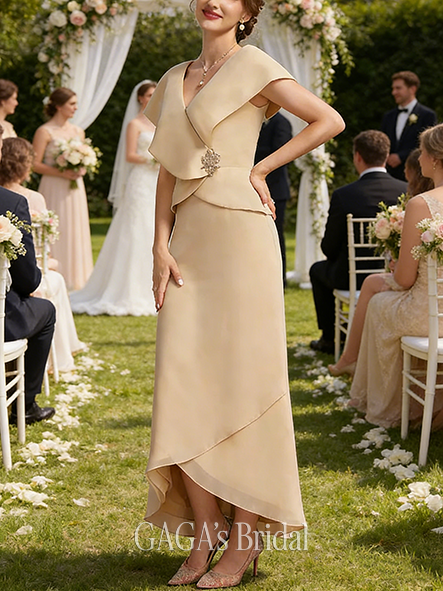 • Plus Size A-line Refined Graceful V-Neck Asymmetrical Chiffon Mother of the Bride Dress With Beading Sequins