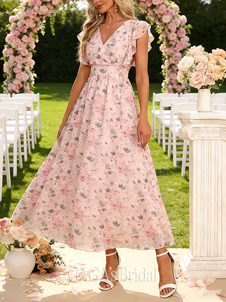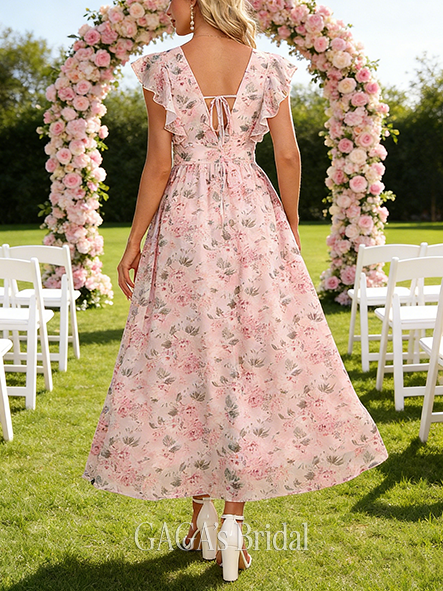 • Short A-line Light V-Neck Ankle-Length Chiffon Bridesmaid Dress With Ruffle