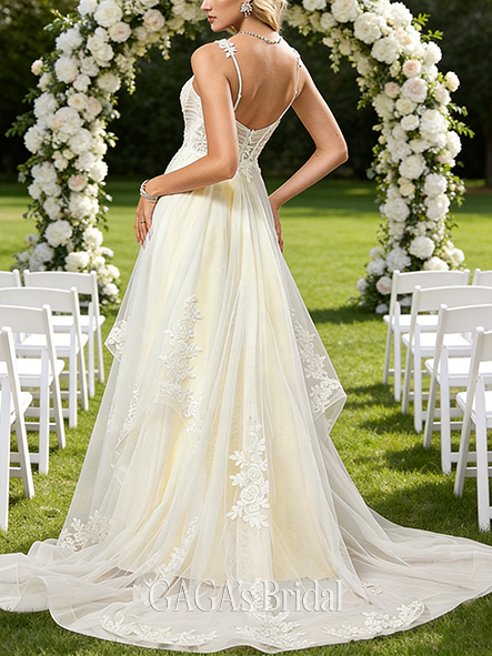 - Cold Shoulder Sweetheart A-Line Wedding Dress with Ruffle Detail