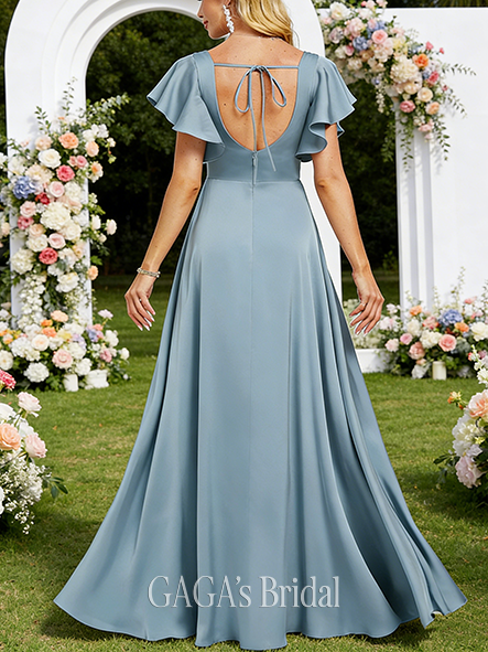 Under $100 A-line Streamlined V-Neck Floor-Length Stretch Satin Bridesmaid Dress